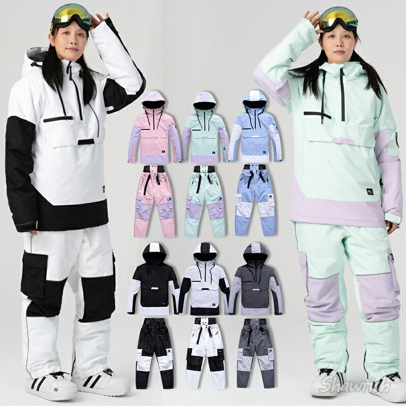 スノーボードウェア 上下セット スノボウェア スキーウェア セットアップ プルオーバーパーカー ジャケット ロングパンツ トップス ボトムス 長ズボン レディース 耐水15000mm 男女兼用 メンズ
