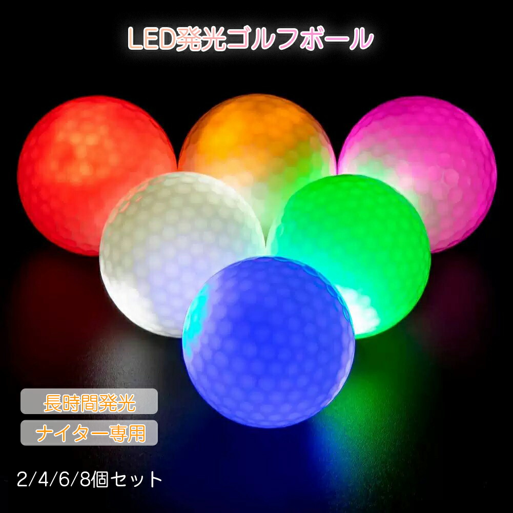 \スーパーsale割引クーポン利用可能/LED発光ゴルフボール ナイター専用 衝撃センサー内蔵 自動点灯 6色ランダム 8分間発光 3層構造 高弾性 夜間練習用 2 4 8 セット LEDゴルフボ 6