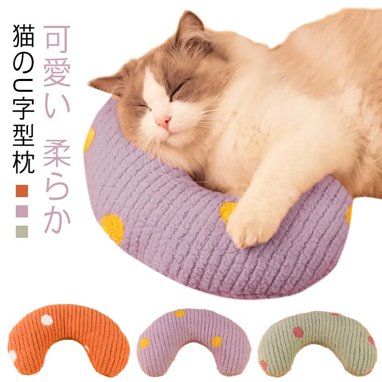 月の形 猫のU字型枕 可愛い ぬいぐるみ 猫 あごのせ猫枕 犬用まくら 快適 ペット枕 柔らか ふわふわ プレゼント用 ペット用 寝心地 あごまくら クッション もちもち 抱き枕