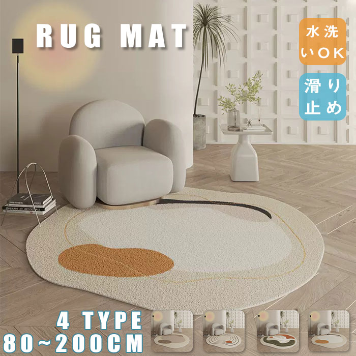 ラグマット ラグ 洗える ラグカーペット カーペット 異形 特殊形状 不規則 絨毯 かわいい シンプル 大きめ 大判 長方形 四角 滑り止めマット リビング 室内 インテリア フロアマット