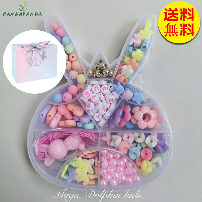 ビーズ アクセサリー ビーズキット パーツ ハンドメイド DIY材料 手作り ブレスレット 知育 入園 入学 卒園 祝い 子供の日 虹 人魚 ラッピング袋付き うさぎ