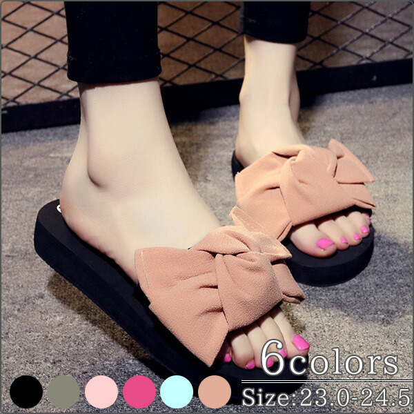 6colors BIGリボン コンフォートサンダル カジュアル 可愛い お洒落 楽チン シューズ 靴 レディース 夏