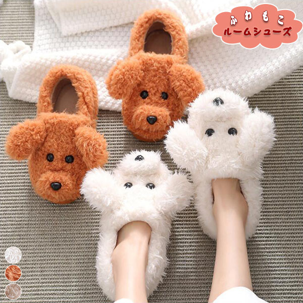 ルームシューズ スリッパ あったか もこもこ 秋冬用 犬 ドッグ 踵カバー 踵無し レディース 2 ふわふわ 室内履き オフィス 暖かい かわいい クリスマス ボア 防寒 可愛い おしゃ 洗える