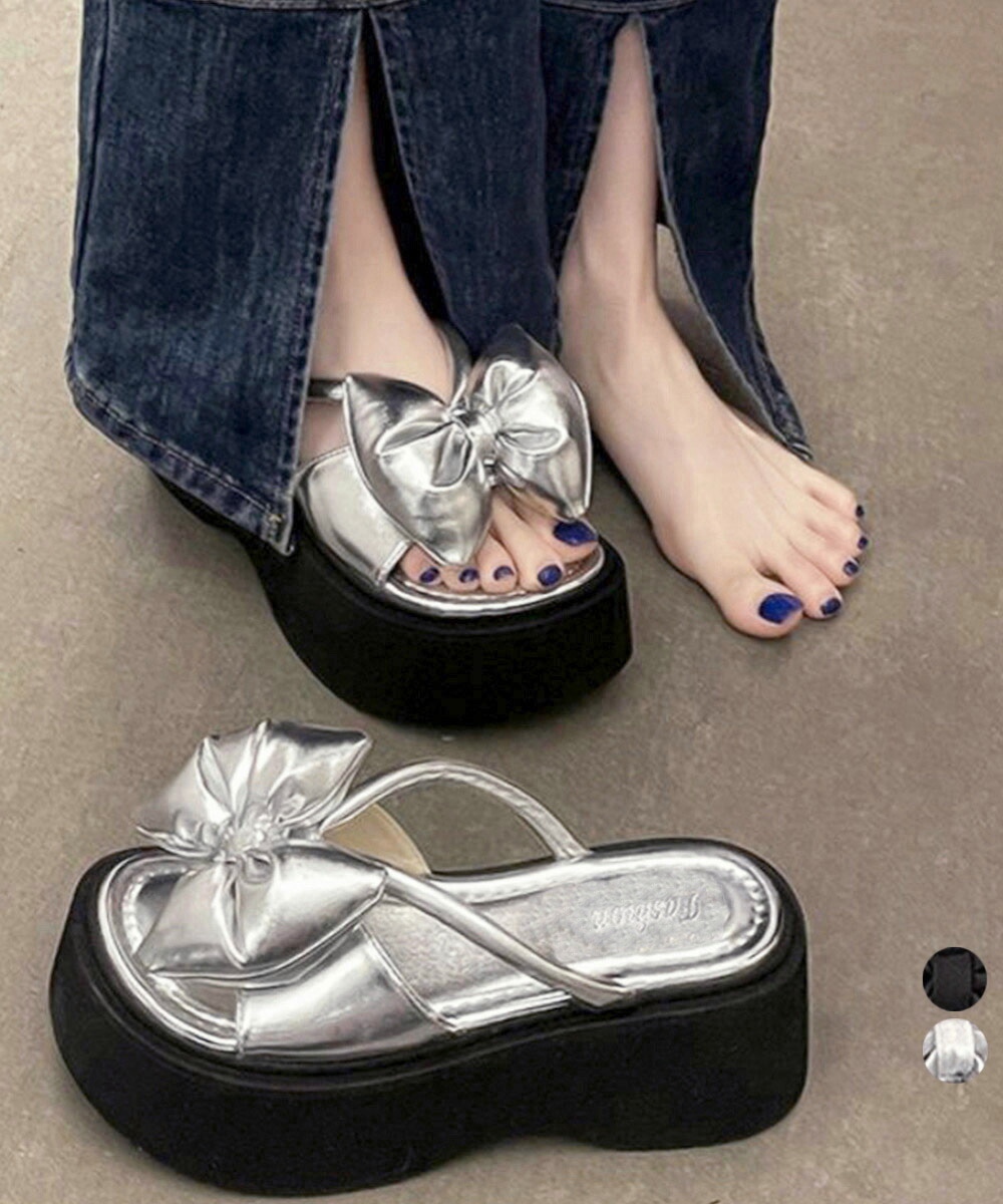 リボンサンダルレディース厚底サンダル夏靴 メタリック プラットフォームサンダル 歩きやすいコンフォートサンダル 可愛いガーリー靴 ミュールサンダル大人美脚 韓国風