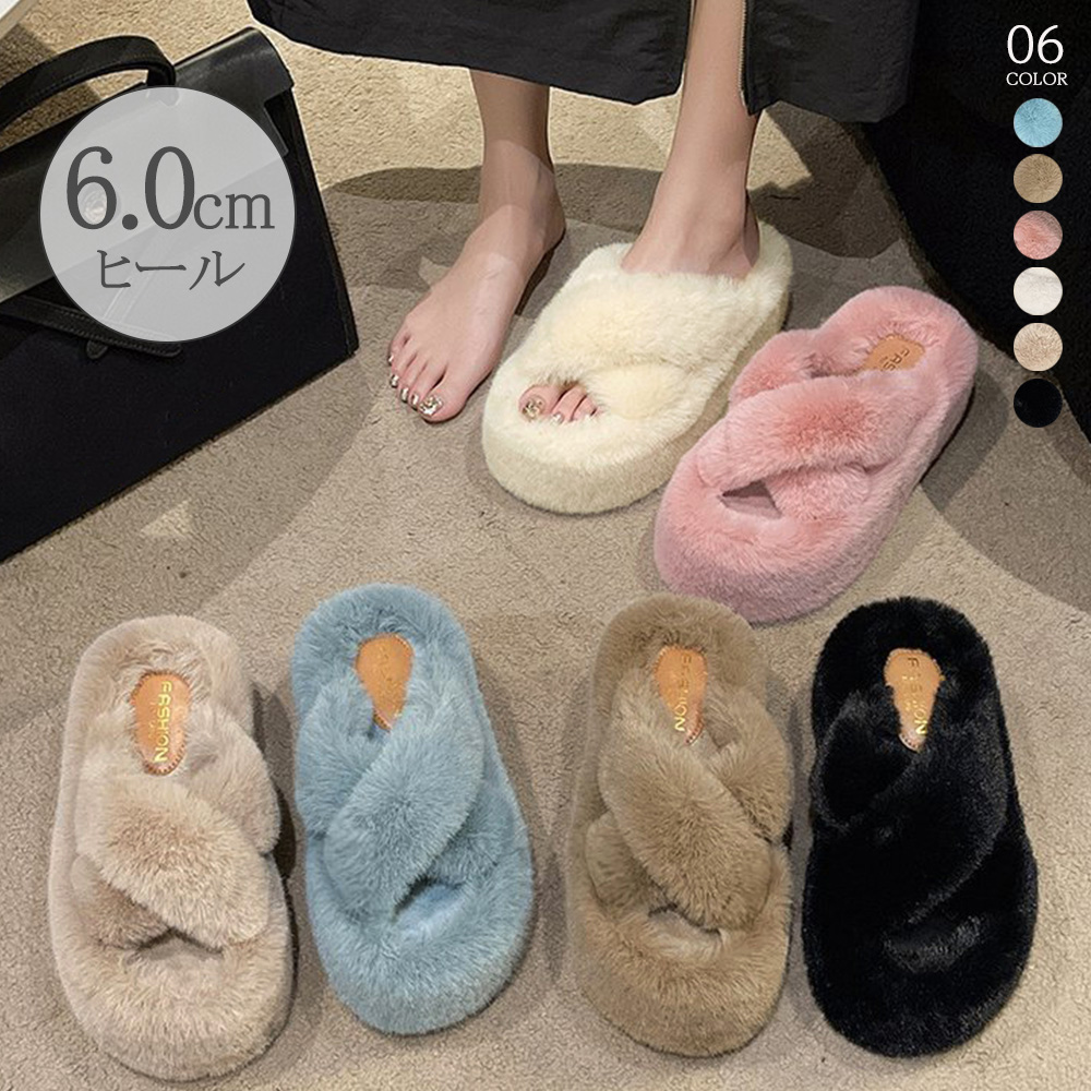 ファーサンダル 厚底 韓国ファースリッパ もこもこ あったか フラットシューズ 歩きやすい レディース フェイクファーサンダル ふわふわ 疲れない 86JI ルームシューズ