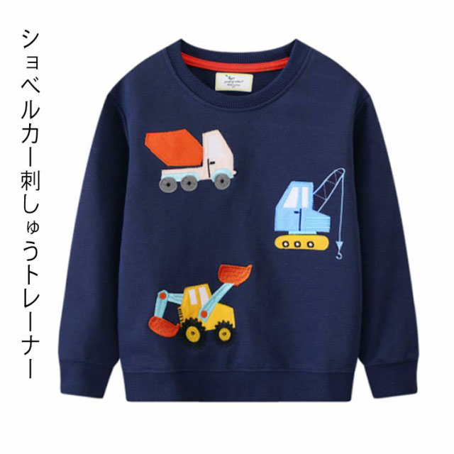 ショベルカー キッズ 子供服 男の子 トップス 綿 刺しゅう コットン スウェット 刺繍 働く車 建設車両 トレーナー ボーイズ カジュアル 秋 冬 かわいい 春