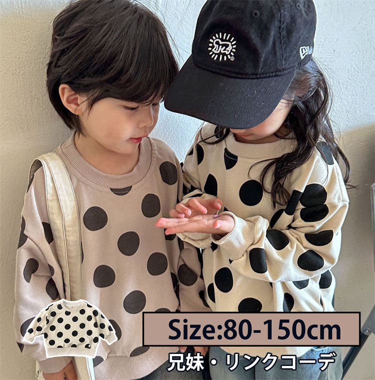 水玉 兄妹お揃い 長袖シャツ 兄弟 姉妹 スウェット 男の子 女の子 かわいい パーカー ベージュ コーヒ色 ブラック 韓国子供服 ペアルック 家族 旅行 こども ベビー 可愛い 秋 春 部 オシャレ