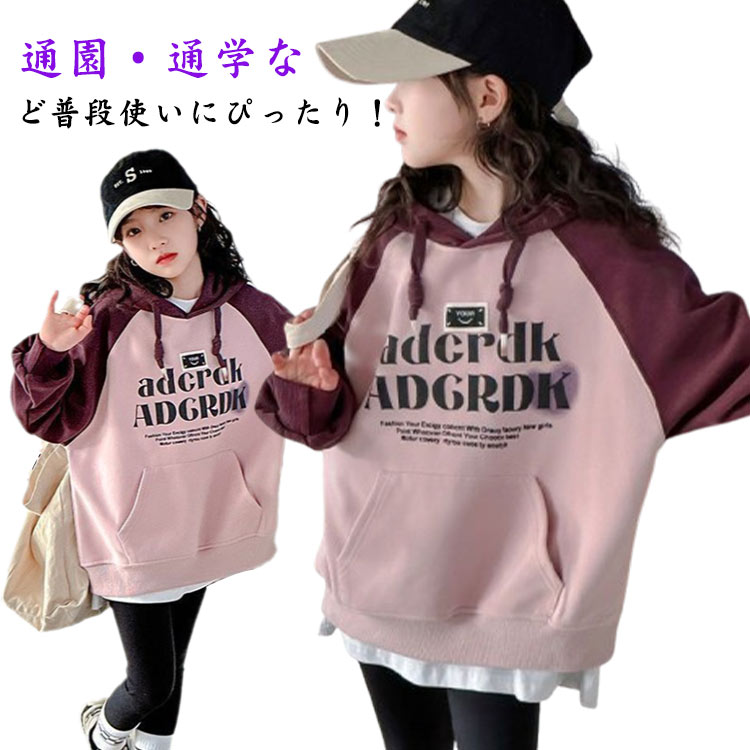 子供服 パーカー ポケット 男の子 女の子 長袖 スウェット プルオーバー キッズ ジュニア シンプル 無地 カジュアル 着まわし