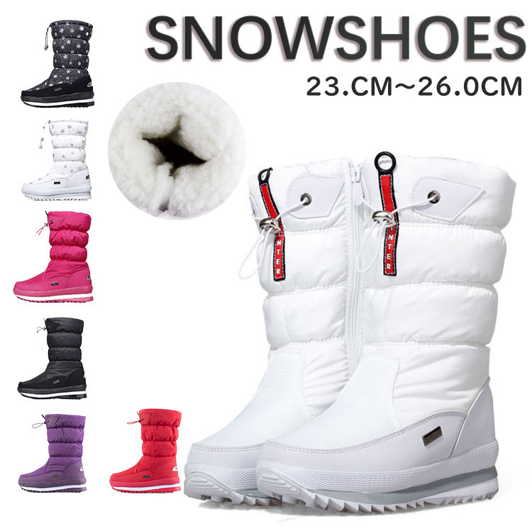 スノーブーツ ブーツ レディース ブラック 黒 レッド ブラウン 靴 シューズ ハイカット おしゃれ 滑らない 撥水 防風 透湿 防寒 保温 暖かい スノーシューズ ジッパー付き 雪 アウトドア