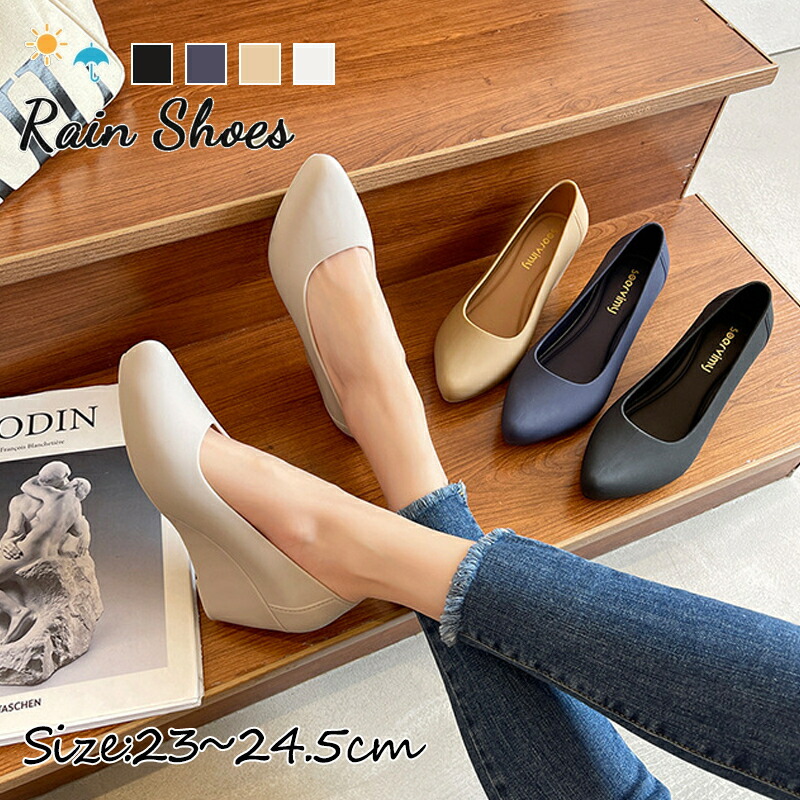 レインシューズ レディース レインパンプス 痛くない 通勤 おしゃれ 幅広 履きやすい 可愛い ポインテッドトゥ パンプス ウェッジソール 靴 雨靴 アウトドア 防水 梅雨対策 歩きやすい 晴雨兼用