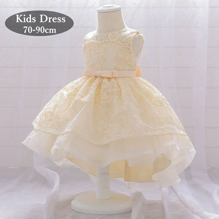 ベビードレス ドレス フラワーガール ワンピース ベビー 花柄レースフラワーガール 結婚式 パーティー お姫様 キッズ 女の子 フォーマル 高級 発表会 誕 70-90cmドレス