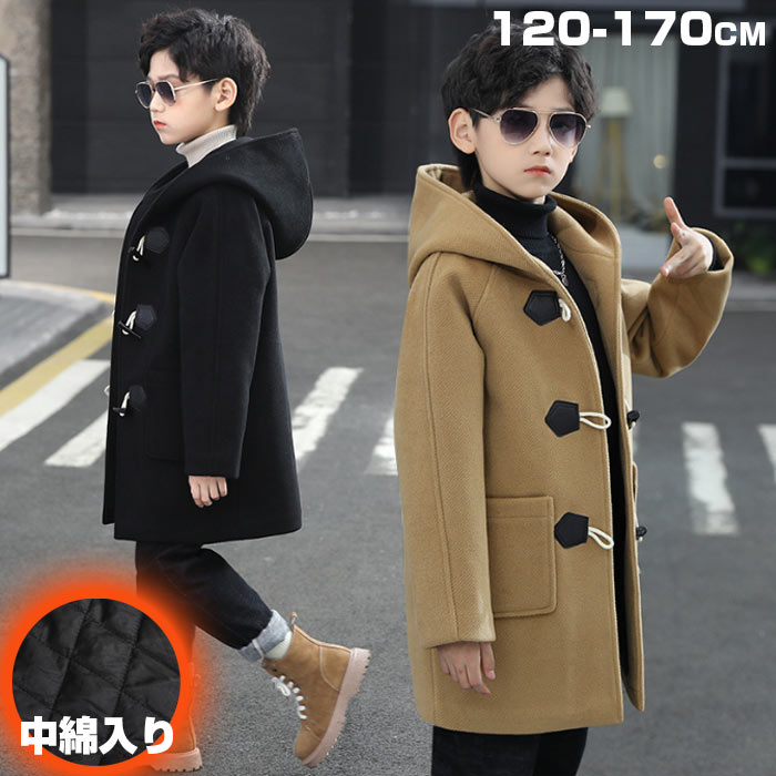 子供服 ダッフルコート キッズ 男の子 秋 冬 コート おしゃれ アウター ロング 防寒着 小学生 学生 スクールコート 女子 男子 中学生 防寒 黒 無地 シンプル 暖かい