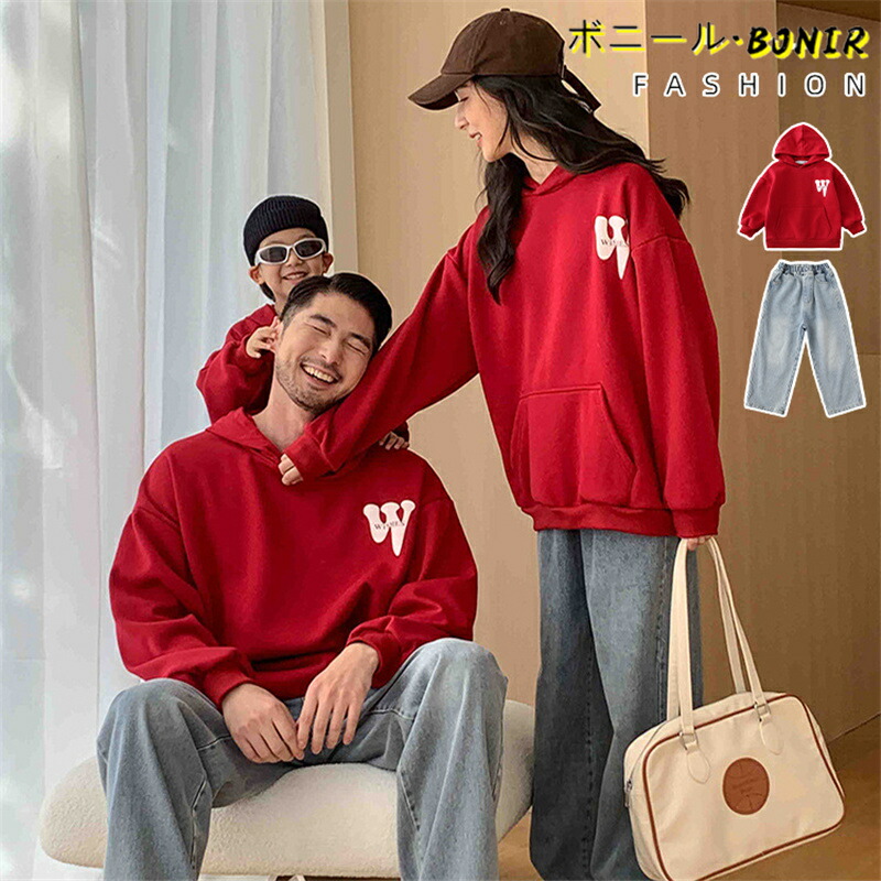 親子 ペアルック 赤ちゃん トレーナー 赤 パーカー 親子ペア 秋冬 トップス 家族お揃い ゆったり ママ 娘 パパ 息子 韓国子供服 親子コーデ ベビー 誕生日 プレゼント クリスマス 大きいサイズ