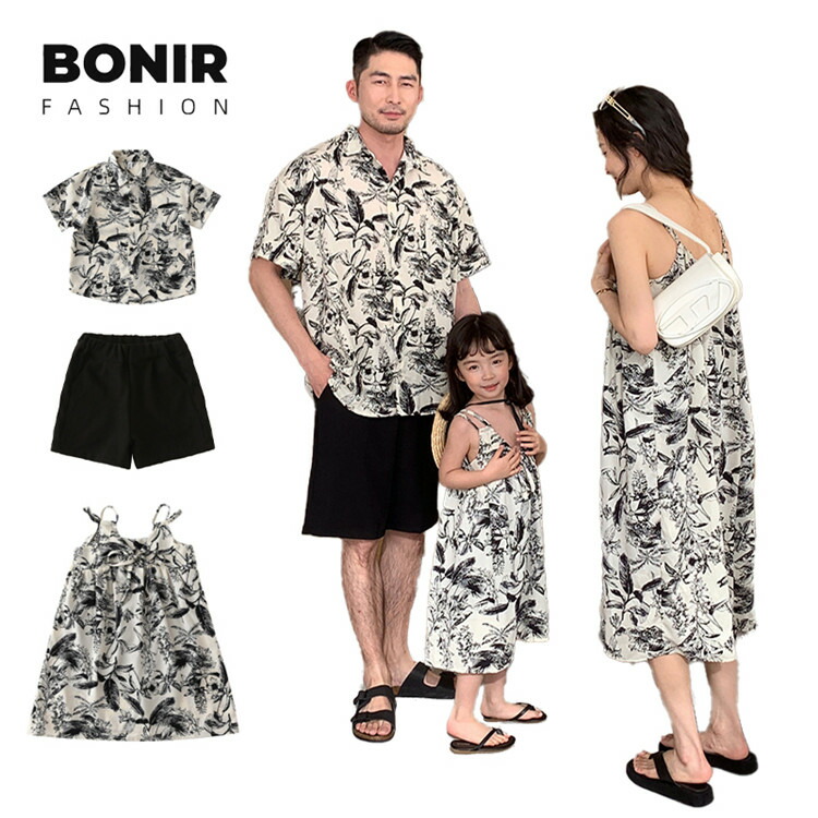 親子コーデ 半袖 シャツ ワンピース レディース 家族お揃い 親子ペア キッズ リンクコーデ 親子 ペアルック ママ パパ 子供アロハシャツ メンズ 花柄 ビーチ 旅行 リゾート 夏