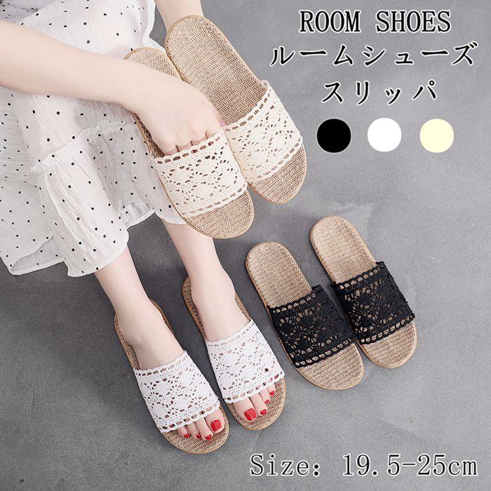 スリッパ 麻 蒸れない 通気 洗える 夏用 ルームシューズ 夏バーゲン 室内 ソフト ルーム サンダル」レース+リネン リネン 室内履き レース レディース涼しい 自宅用 サンダル