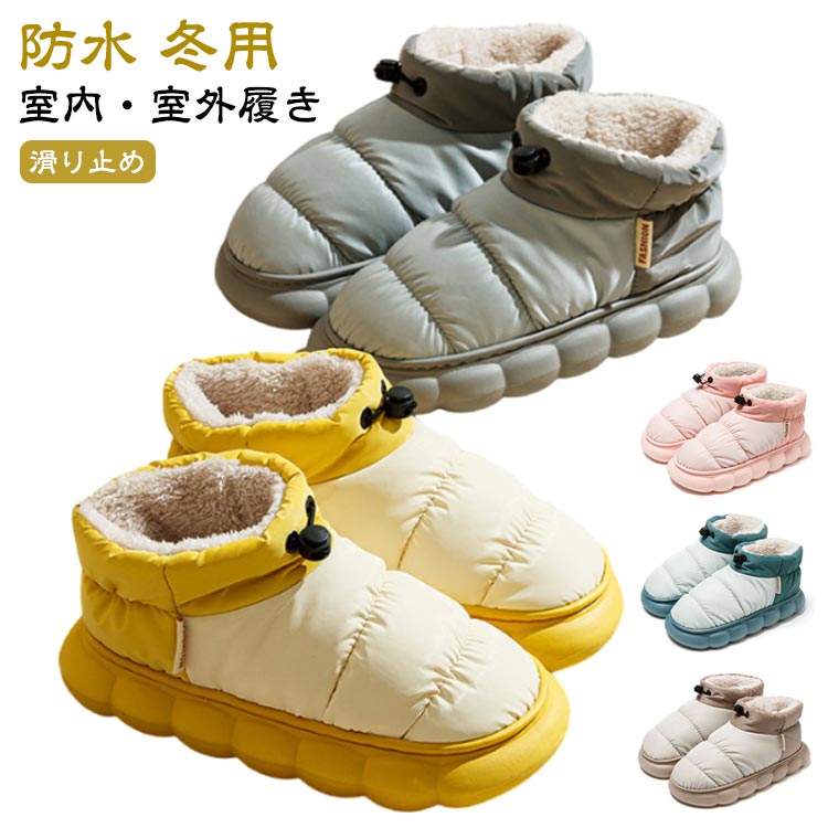 ブーツ 撥水加工 防寒 ふわふわ 男女兼用 外履き おしゃれ アウトドア ムートンスリッパ かかとあり