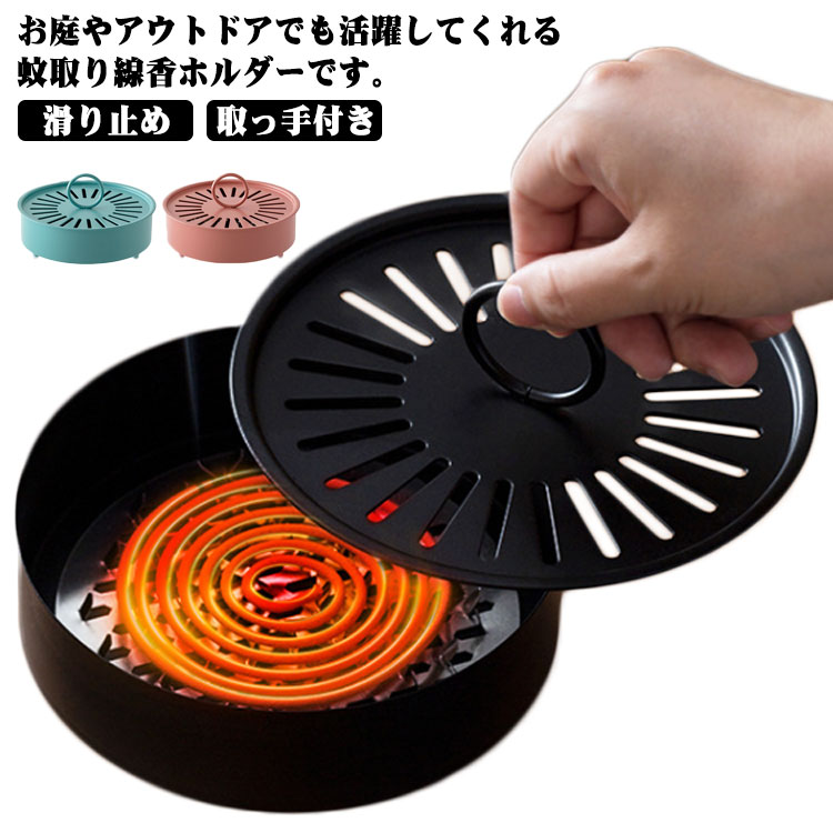 蚊取り線香ホルダー 防蚊 大容量 取っ手付き キャンプ アウトドア バーベキュー 蚊取り線香入れ 蚊遣り器 蚊取り器 屋内 屋外 お手入れ簡単 お洒落 家庭用 滑り止め