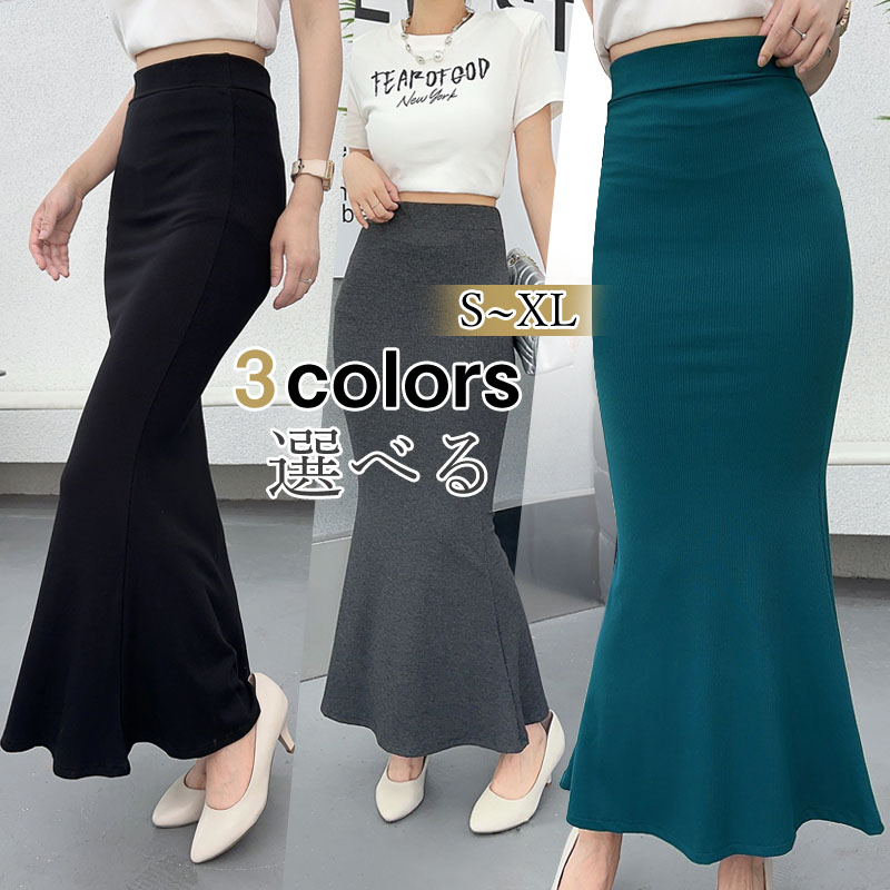 人魚 美ライン マーメイドライン ロングスカート ハイウエスト エレガント ゴムウエスト ライン ストレッチ素材 可愛い 着痩せ 美脚 きれいめ 女子会 二次会 お出かけ