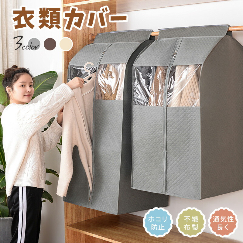 衣類カバー 洋服カバー 吊り下げ式 不織布 まとめて収納 フルカバー 衣装カバー 衣類収納 ほこり除け クローゼット収納 衣類ダストカバー コートダストバッグ ロングサイズ 防汚 整理 ショートサイズ