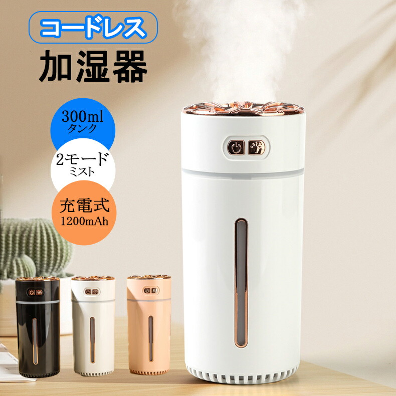 加湿器 卓上 コードレス USB充電 超音波加湿器 300ml 車載加湿器 充電式 超音波 アロマ 卓上加湿器 空焚き防止 かわいい 静音 乾燥対策 簡単お手入れ 小型 おし コンパクト
