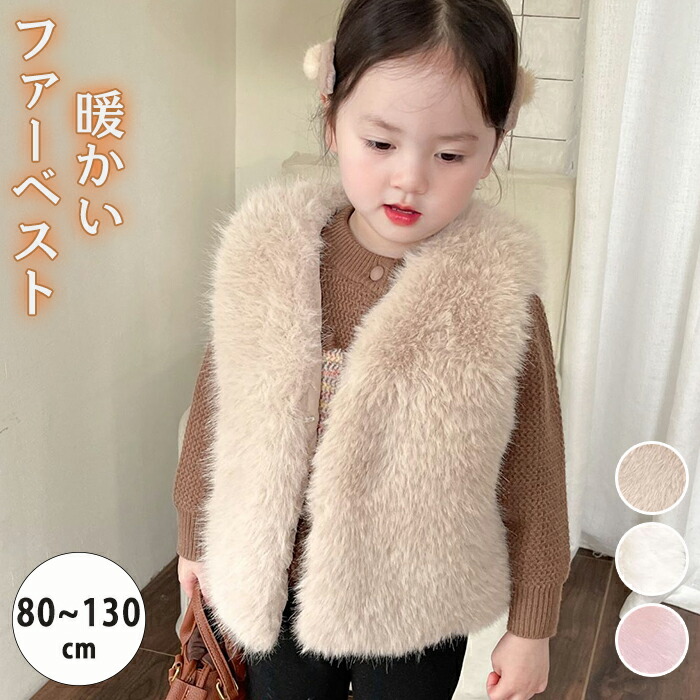 フェイクファー ファーベスト 暖かい もこもこ ベスト ベビー服 ふわふわ 女の子 子供服 冬 袖なし チョッキ 80 90 100 110 120 130 140 150
