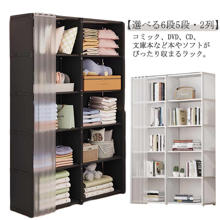 選べる6段 リビング 選べる6段 扉付 扉付き 収納 棚 本棚 本収納 書棚 リビング収納 書棚 子供部屋 2列収納 スリム 大容量 5段