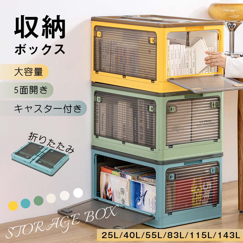 \最大30%OFF/収納ボックス 収納ケース 折り畳み 5面開き 室内 折りたたみ 組み立て簡単 蓋つき 衣装収納 省スペース クリア 押入れ収納 大容量 キャスター付き 安定 耐久性 積み重 お洒落