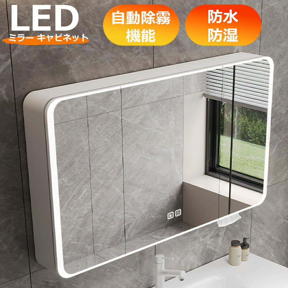 超ポイントバック祭開催中 限定P10倍 洗面所 ミラー キャビネット ライト付き led照明 洗面台 鏡 収納 北欧 60 100cm 浴室
