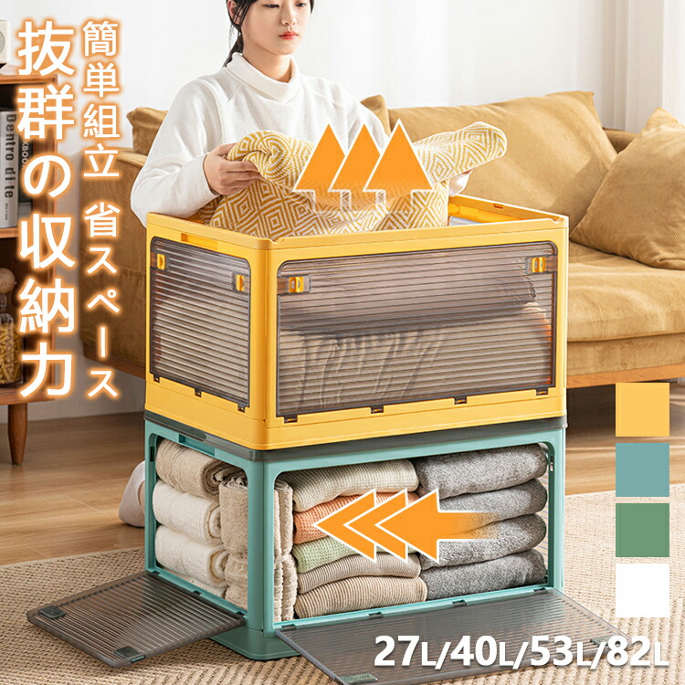 収納ボックス 折畳み キャスター付き 5面開閉 収納ケース 大容量 押入れ収納 組立簡単 27L 40L 53L 82L 積み重ね 衣装収納ボックス フタ付き ボックス コンパクト 透明収納 コンテナ