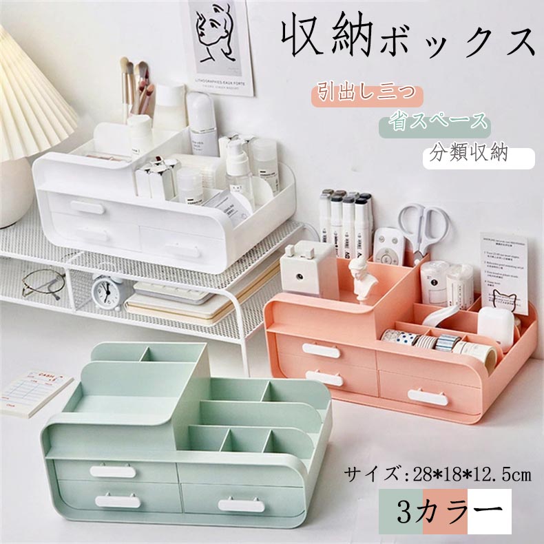 化粧品 収納 ボックス メイクボックス 可愛い可愛い 化粧ボックス コンパクト メイク 多機能 小物入れ 引き出し 可愛い 卓上引出し三つ おしゃれ 省スペース 雑貨 コスメ 文房具 メイク道具