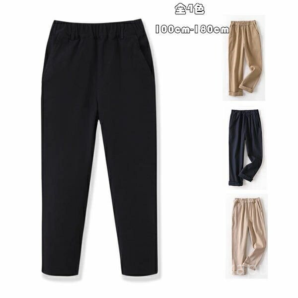 夏 春 アプリコット ネイビー ブラック 無地 長ズボン 高校生 中学生 小学生 ロングパンツ ズボン 子供服 キッズ ユニセックス