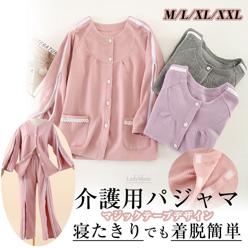 介護用パジャマ 寝たきり パジャマセット パジャマ 長袖 トップス ボトムス 着脱簡単 2点セット 上下セット レディース メンズ マジックテープ介護 通年用 全開フルオープン 術後 入院 点 要介護