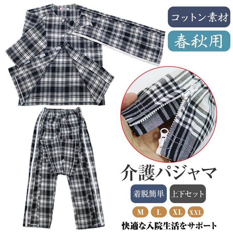 フルオープン 全開 入院服 パジャマ 介護用寝間着 入院パジャマ 介護パジャマ 介護服 障害者服 患者服 ファスナー マジックテープ 上下セット 綿 介護用品 春秋 メンズ 高齢者 長袖 レディース