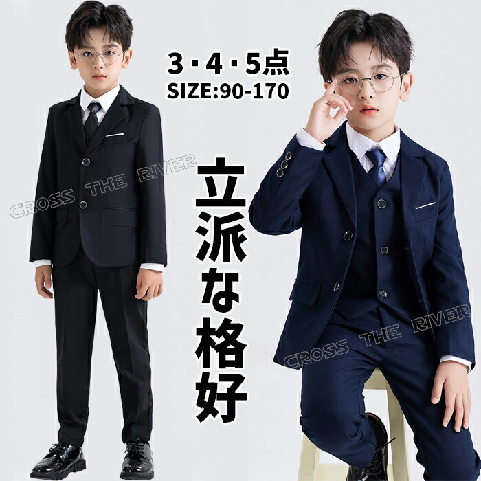 フォーマルスーツ 男の子 子供服 ブラックスーツ お洒落 ピアノ発表会 結婚式 入学式 入園式 発表会 男子 キッズスーツ フォーマル ジュニア スーツ 5点セット セレモニー 子ども服 4点セット