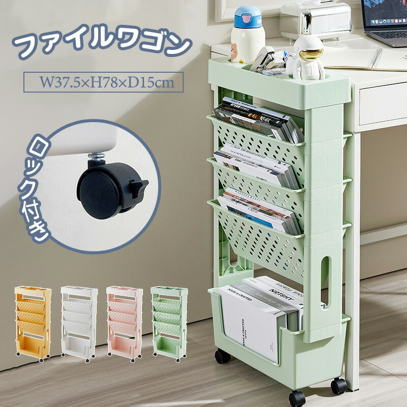 マガジンラック スリム ファイルワゴン 薄型 回転 キャスター付き おしゃれ 北欧 コンパクト 大容量 サイドワゴン デスクワゴン 子供部屋 オフィス 教科書収納 書類整理 雑誌収納 a テキスト整理