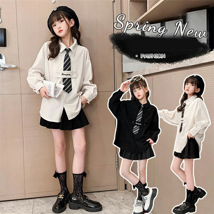ホワイト ス シャツ キッズシャツ キッズ服 シンプル ダンス衣装 秋 子供 120-170cm 春 コーデュロイ 発表会 長袖 キッズ 人気 ブラック おしゃれ ジュニア ウェア ネクタイ付き 通学