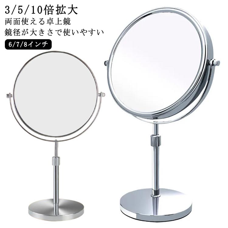 卓上 両面 卓上ミラー 裏面 メイク用 7インチ 10倍拡大鏡 6インチ 3倍 スタンドミラー ショップ 両面鏡 高さ 8インチ 卓上鏡 メイクアップ 調節 店舗 上品 ミラー 移動式 安い 見やすい
