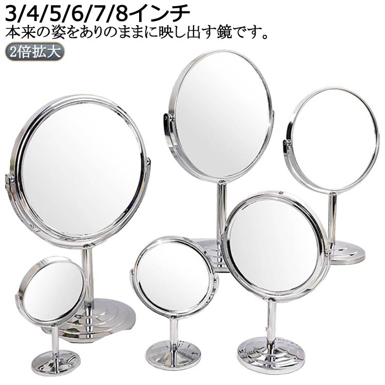 卓上ミラー 等倍 拡大ミラー 円形 丸スタンドミラー 3インチ 4インチ 5インチ 6インチ 7インチ 8インチ 2倍拡大 化粧用ミラー 化粧ミラー 送料無料