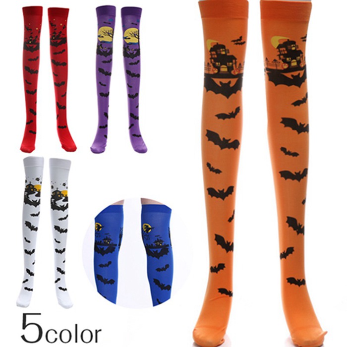 ハロウィンシーズン殺到!スカートにかけないソックス ストッキング ニーハイ オーバーニー コウモリ柄