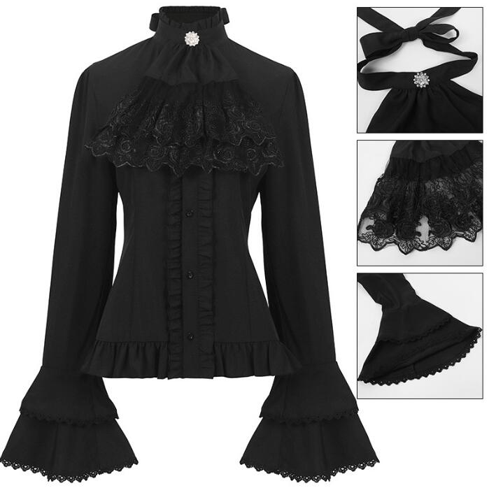 ゴシック&ロリータ ブラウス フレア長袖ブラウス 欧米 宮廷風 パンク風 ブラウス レーススタンドカラー レトロシャツ ブラウス 女性 ゴスロリシャツ ハロウィン コスプレ衣装