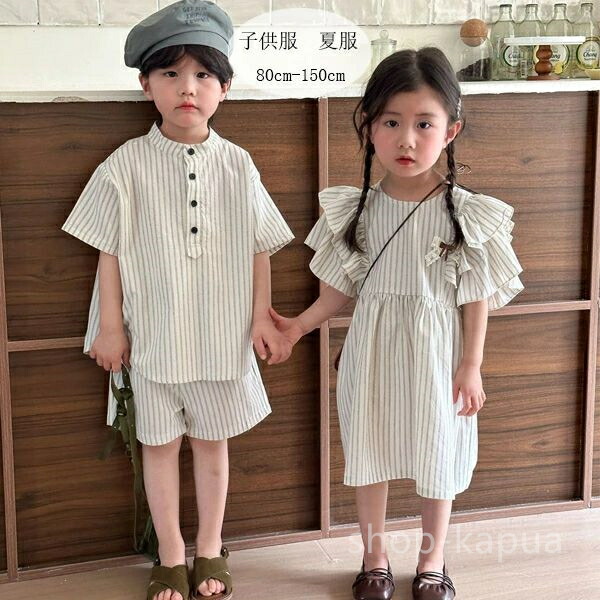 ストライプ キッズ 夏着 通学着 通園着 普段着 プレゼント 双子 姉妹 兄弟 男の子 セットアップ ワンピース 夏服 子供服 女の子