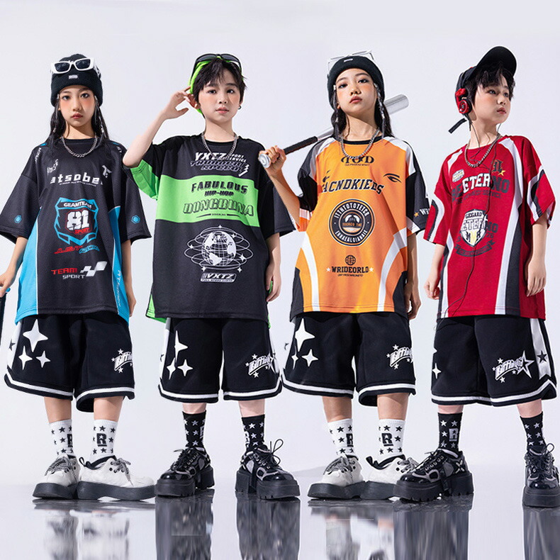 4色 半袖Tシャツ 短パン キッズ ダンス衣装 ヒップホップ セットアップ 上下セット おしゃれ 男の子 女の子 かっこいい ゆったり オーバーサイズ トップス 韓国 jazz k-po ハーフパンツ