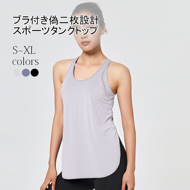 タンクトップ スポーツウェア ブラトップ レディース ブラ付き フィットネスウェア 偽二枚 吸汗 速乾 ストレッチ ランニング トレーニング ダンス フェイクレイヤード ヨガウェア カップ ブラタンク