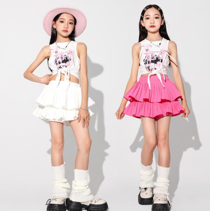 女の子 ダンス衣装 プリーツ キュロット へそ出しベスト ジャズ ヒップホップ チアダンス 演出服 jazz hiphop ステージ衣装 かっこいい 体育祭 団服 フレア 舞台演出服
