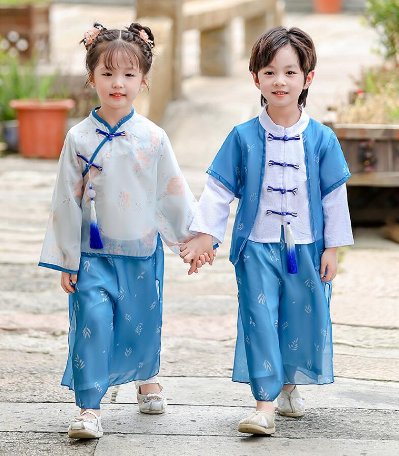 キッズ漢服 長袖シャツ 子供漢服衣装 中華古代服 チャイナボタン 唐装 古典美人服 舞台衣装 ステージ衣装 団体服 中華服 チャイナ服 中華風 チャイナ風 華流衣装 仮装 コスチューム 写真 イベント