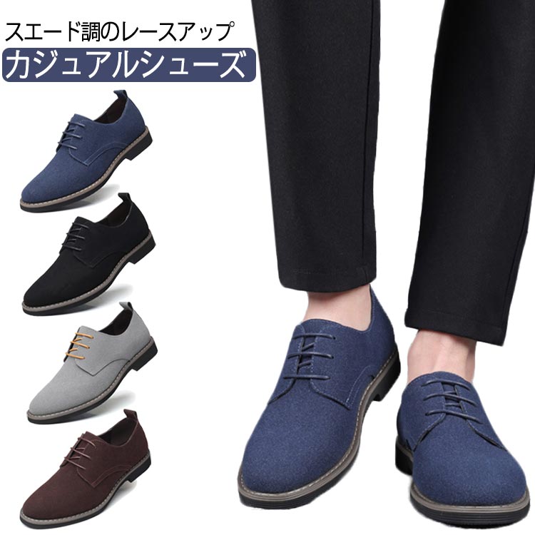 ローカット スエードシューズ スラックスに合う靴 シューズ メンズ レースアップ 軽量 歩きやすい スエード調 プレーントゥ ビジネス カジュアルシューズ