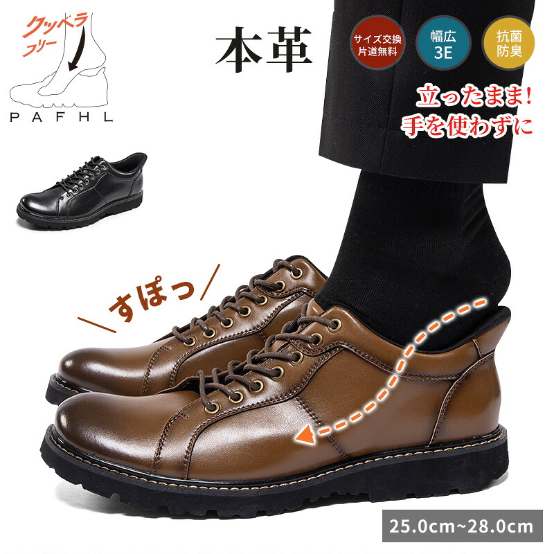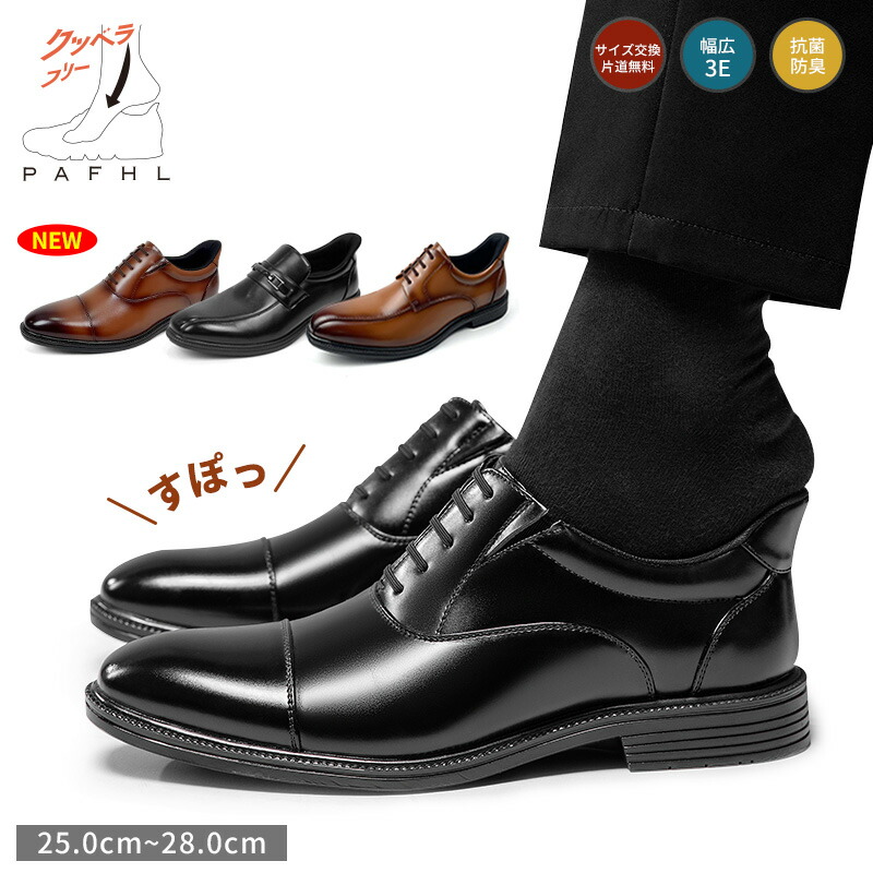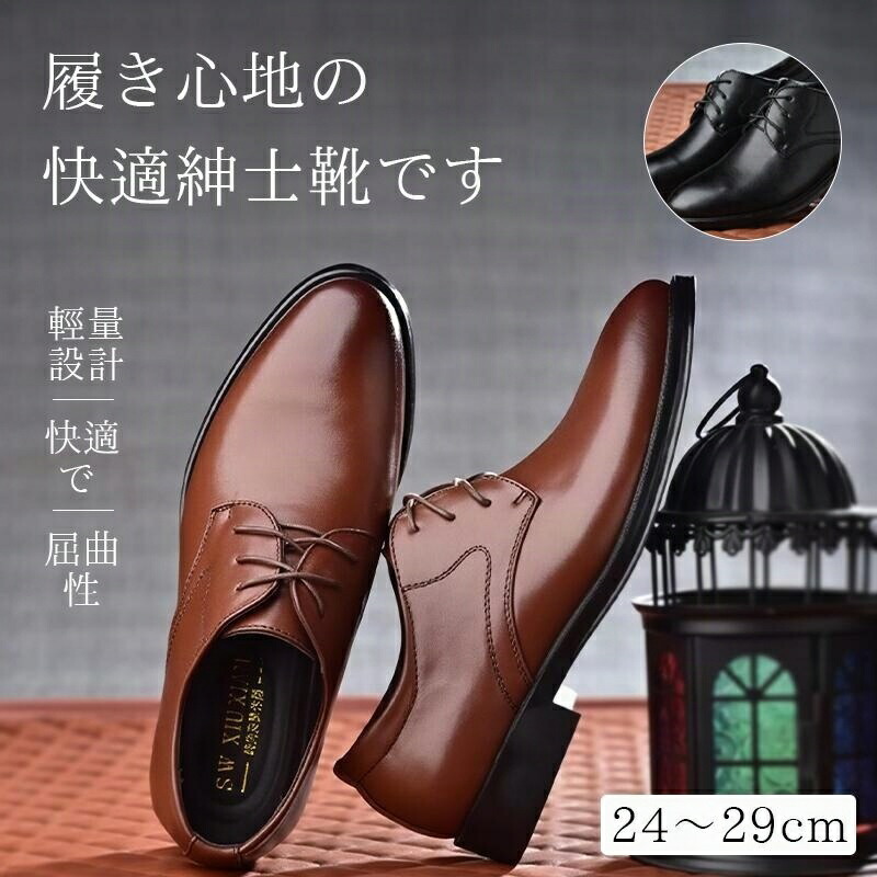 革靴 メンズ 立ったまま履ける靴 ビジネスシューズ 超軽量 幅広 3E 防臭 抗菌 疲れない 滑り止め 通気性 光沢感 仕事 紳士靴 ストレートチップ ブラック 25.0cm-28.0cm PUレザー
