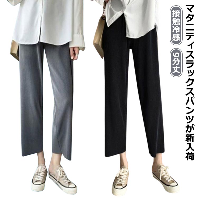 マタニティパンツ ストレッチ ワイドパンツ 薄手 妊娠 接触冷感 裾セルフカット可 伸縮性 産前 マタニティ 冷感パンツ 春夏 妊婦服 ロングパンツ マタニティウェア ボトム リブ リラックス ズボン