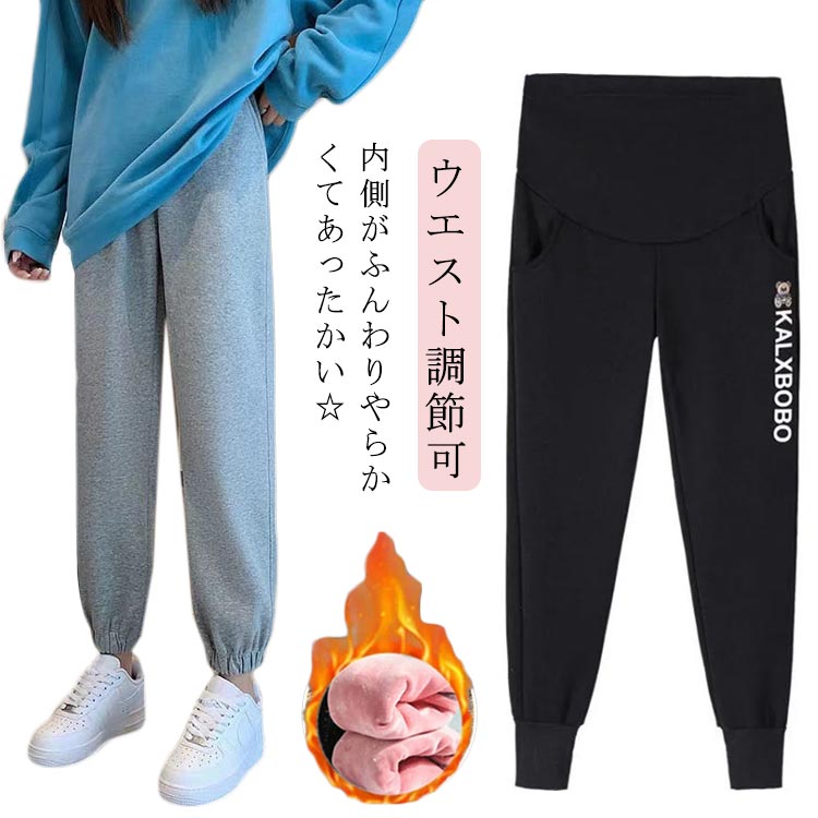 秋冬 アジャスター パンツ スウェット ウエスト調節可 パジャマ 黒 マタニティパンツ ルームウェア マタニティ ルーム 極厚 あったか 裏シャギー レディース ズボン 部屋着 妊婦 妊 調整