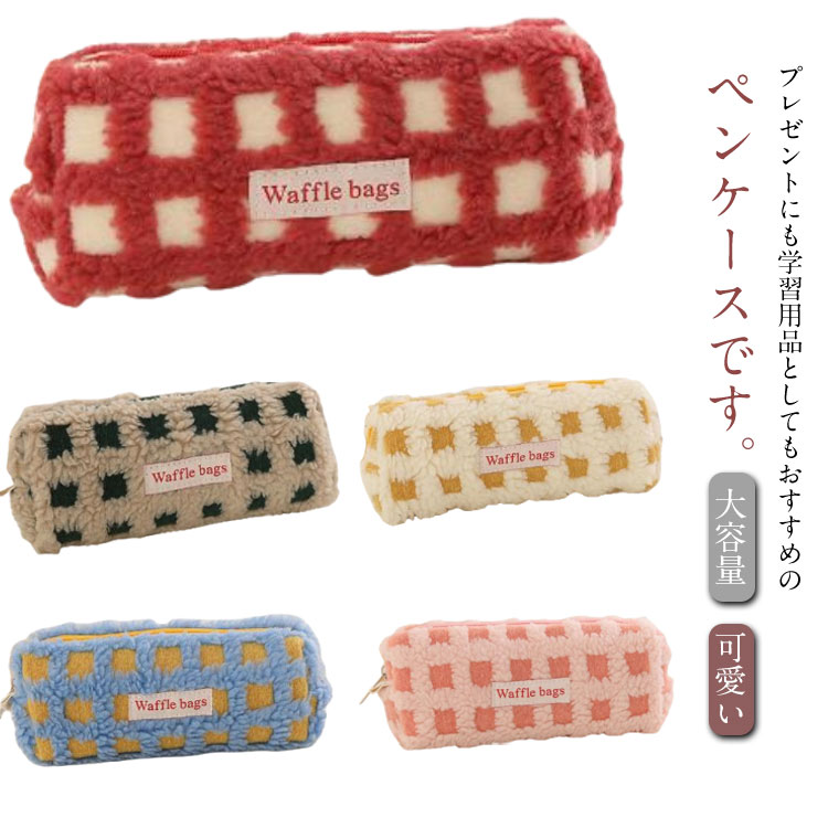 ボアワッフルペンケース 高校生女子 オシャレ 大容量 シンプル ペンケース レディース 筆箱 もこもこ 仕切り ポーチ 筆入れ 文具 韓国 おしゃれ 可愛い 多機能 中学 大学生 女子 小学校 高校